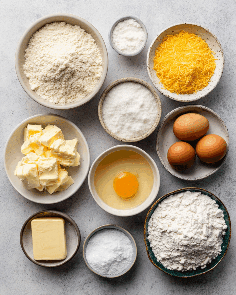 - Combine Ingredients: In a large mixing bowl, combine the almond flour, all-purpose flour, baking powder, and sugar. In a separate bowl, whisk the eggs, melted butter, and orange zest together.