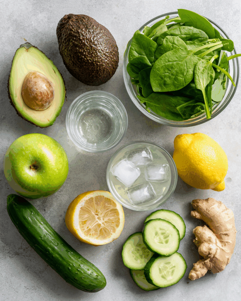 A creamy, refreshing smoothie that blends ripe avocado with green apple, spinach, and ginger for a bright, energizing detox drink.