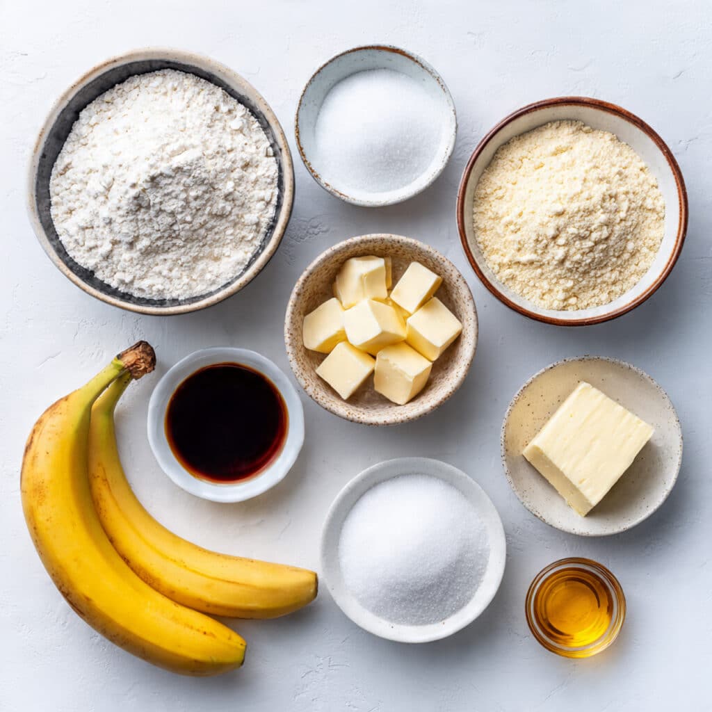 Banana bread uses simple pantry ingredients that you likely already have at home:
