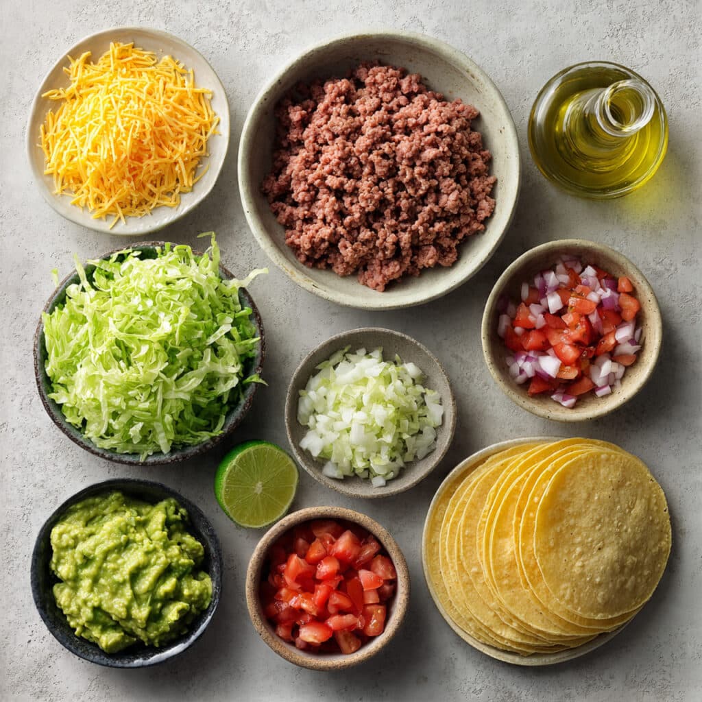- Combine Ingredients: In a large skillet, cook the ground beef until browned. Drain excess fat. Stir in taco seasoning and ¼ cup water. Simmer for 2–3 minutes, then remove from heat and mix in shredded cheese.