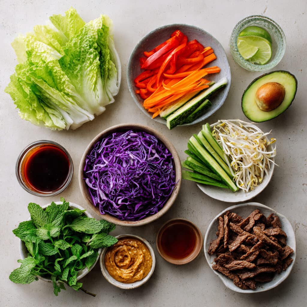 Ingredients in Beef Summer Rolls with Peanut Hoisin Sauce