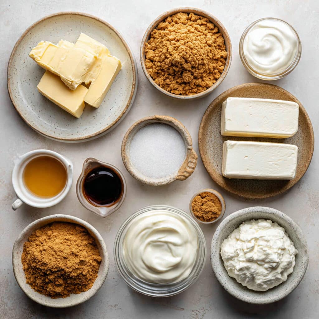 - Biscoff Cookies: 2 cups crushed, for that iconic spiced caramel crust.