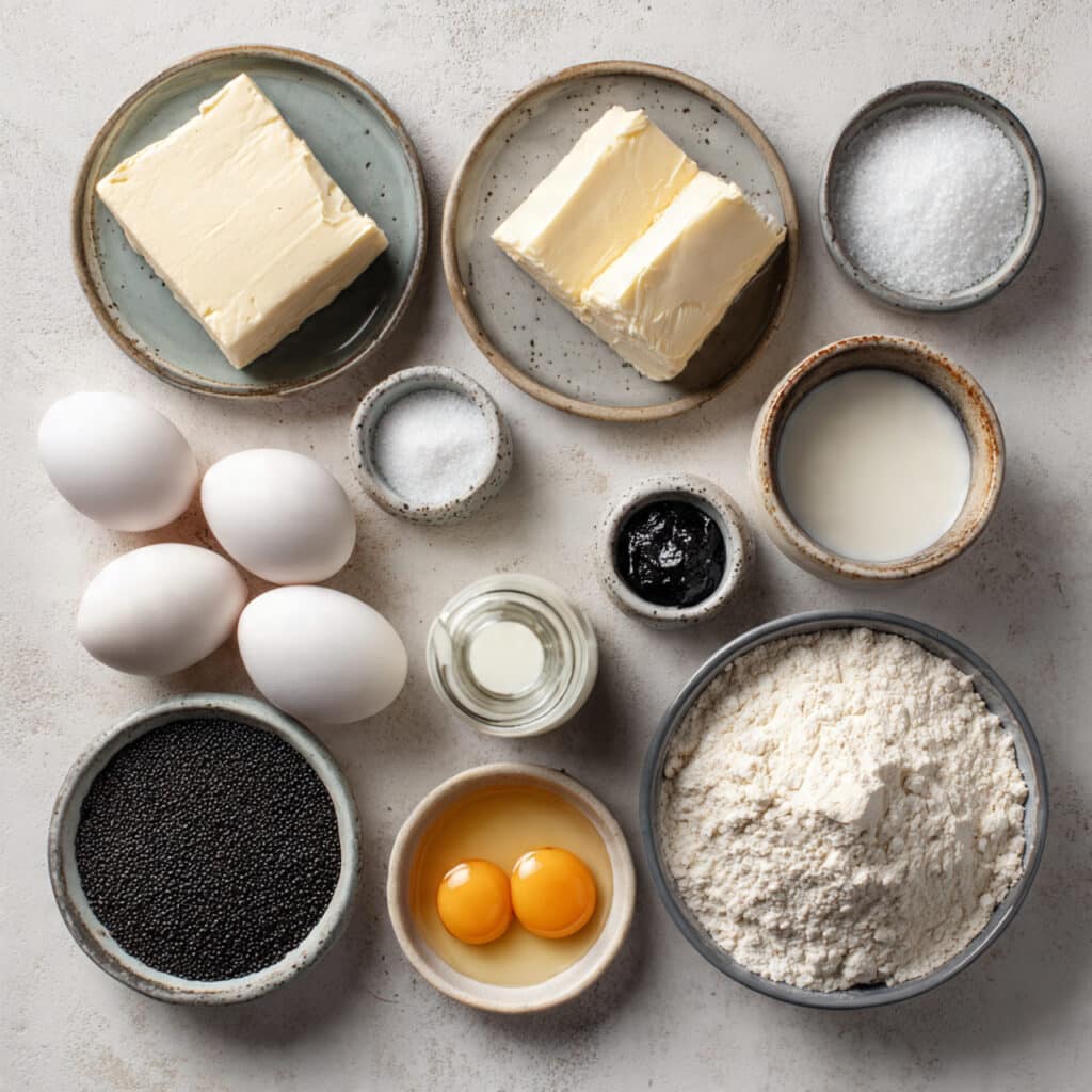 - Large Eggs: 3 eggs at room temperature, create structure and richness.
