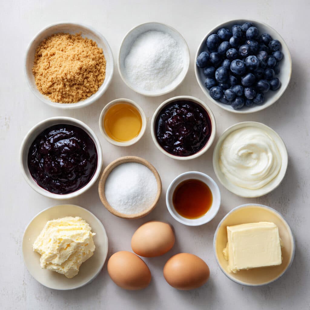 This recipe was born from a craving. I wanted something that tasted like a slice of summer but felt comforting like a cheesecake. So I brought together two of my favorites blueberry pie and cheesecake into one glorious, handheld bar. The moment I saw the bubbling blueberry topping swirl into the creamy filling, I knew I had something special.