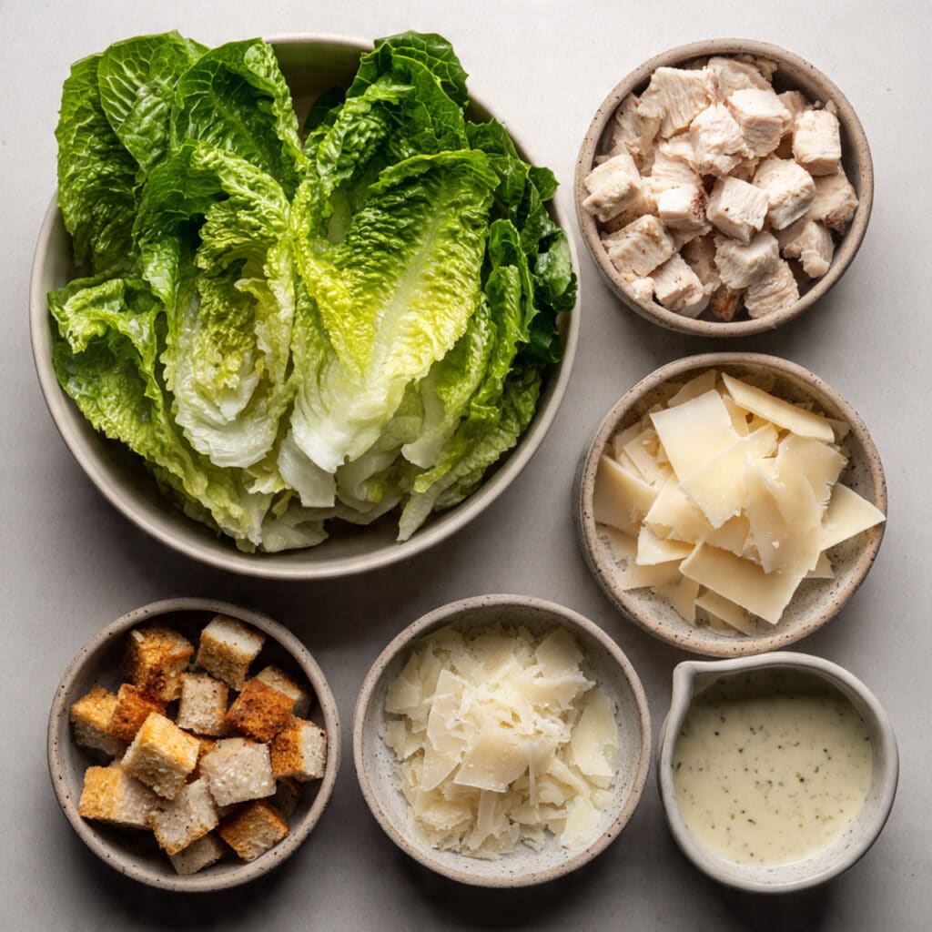 What really makes this dish special is the contrast. Crisp lettuce meets crunchy croutons, creamy dressing balances savory chicken, and salty cheese ties it all together. Each layer builds on the last, creating a bite that feels complete and satisfying.