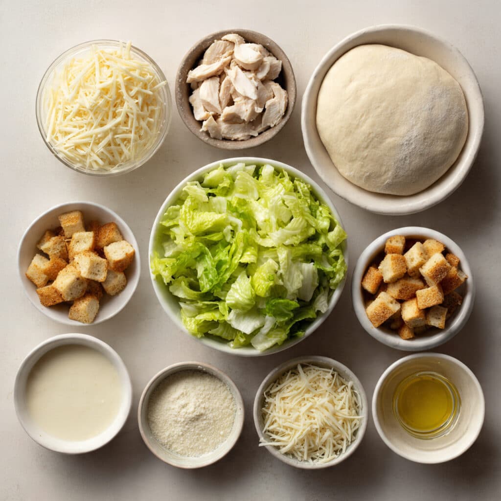 Chicken: Grilled or roasted, chicken is the star of this pizza. It’s lean, filling, and provides a savory contrast to the creamy Caesar dressing.
