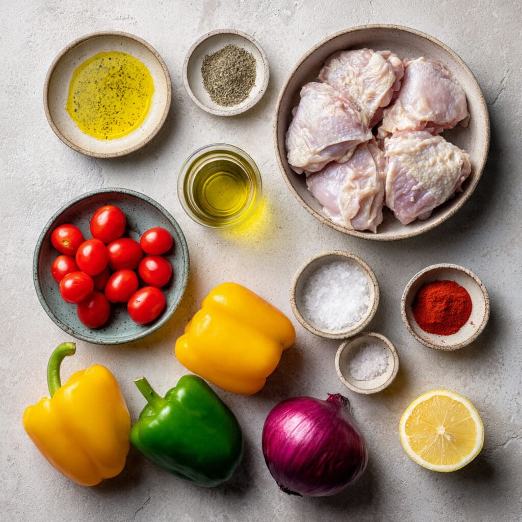 - Assemble the Dish: Add bell peppers, red onion, and cherry tomatoes around the chicken, spreading everything evenly.