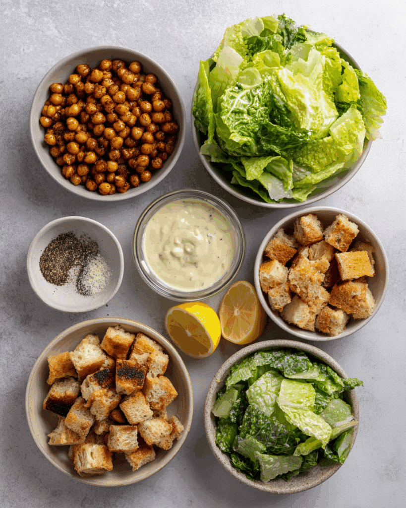 - Caesar Dressing: 1/2 cup Creamy and tangy, it coats the lettuce and chickpeas perfectly.