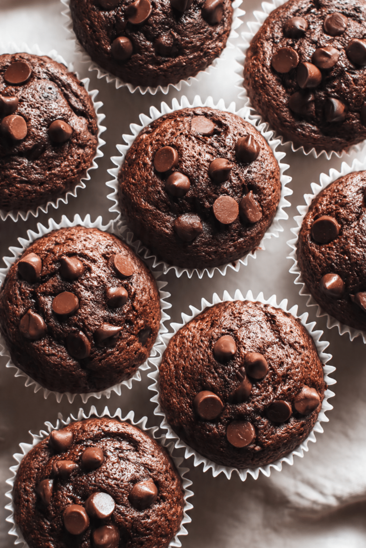 - Divide the batter evenly among the muffin cups, filling each about 3/4 full. Add extra chocolate chips on top if desired.