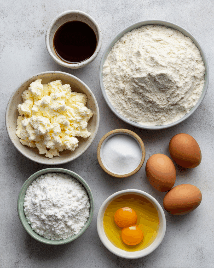 - Cottage cheese: 1 cup – Adds moisture and richness to the pancakes, giving them a soft, fluffy texture.
