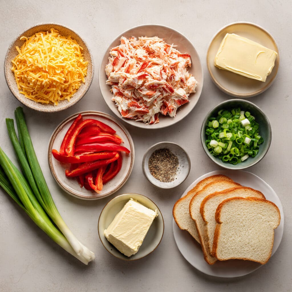 A crispy golden grilled sandwich filled with creamy crab, melted cheddar, and fresh herbs. This comforting seafood twist on classic grilled cheese is quick, satisfying, and packed with flavor.