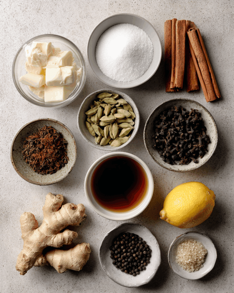 - Cardamom pods: 3 pods, lightly crushed – Brings a citrusy, floral note.