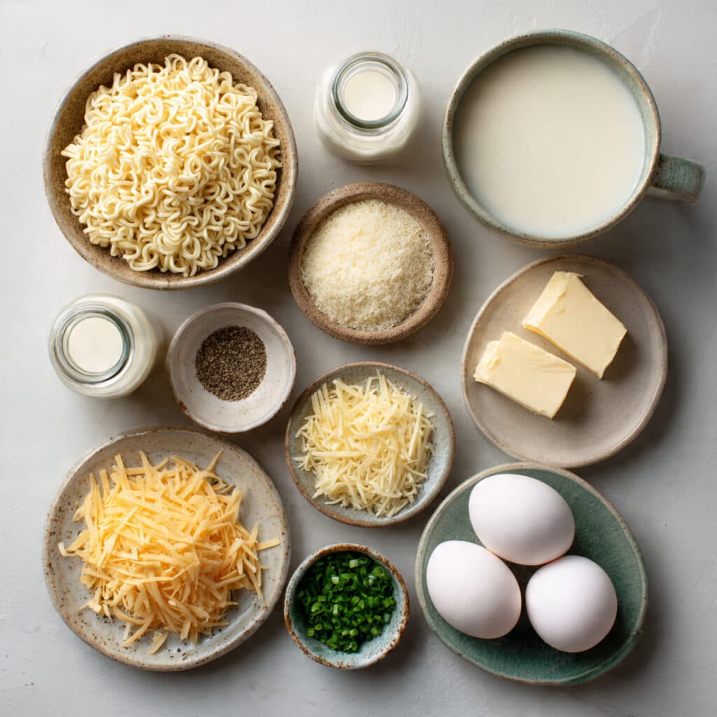 A comforting bowl of ramen noodles cooked in a creamy cheesy broth with soft eggs and fresh chives. Quick, rich, and satisfying.