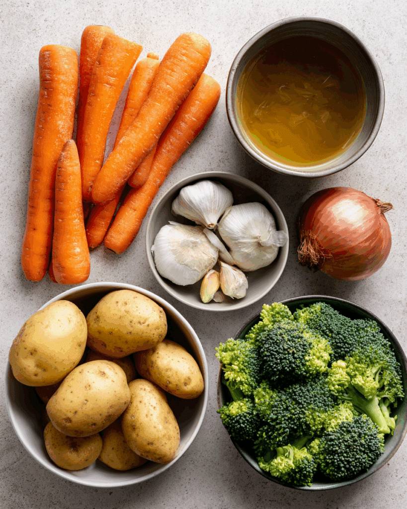 The beauty of this creamy vegetable soup lies in its texture and the balance of flavors. The vegetables break down slightly during cooking, creating a thick, smooth base that’s rich but not too heavy. The creamy finish from the heavy cream enhances the natural sweetness of the carrots and potatoes, while the broccoli adds a slight bitterness to balance it all out. It’s the perfect combination of textures velvety and smooth with a slight crunch from the vegetables.