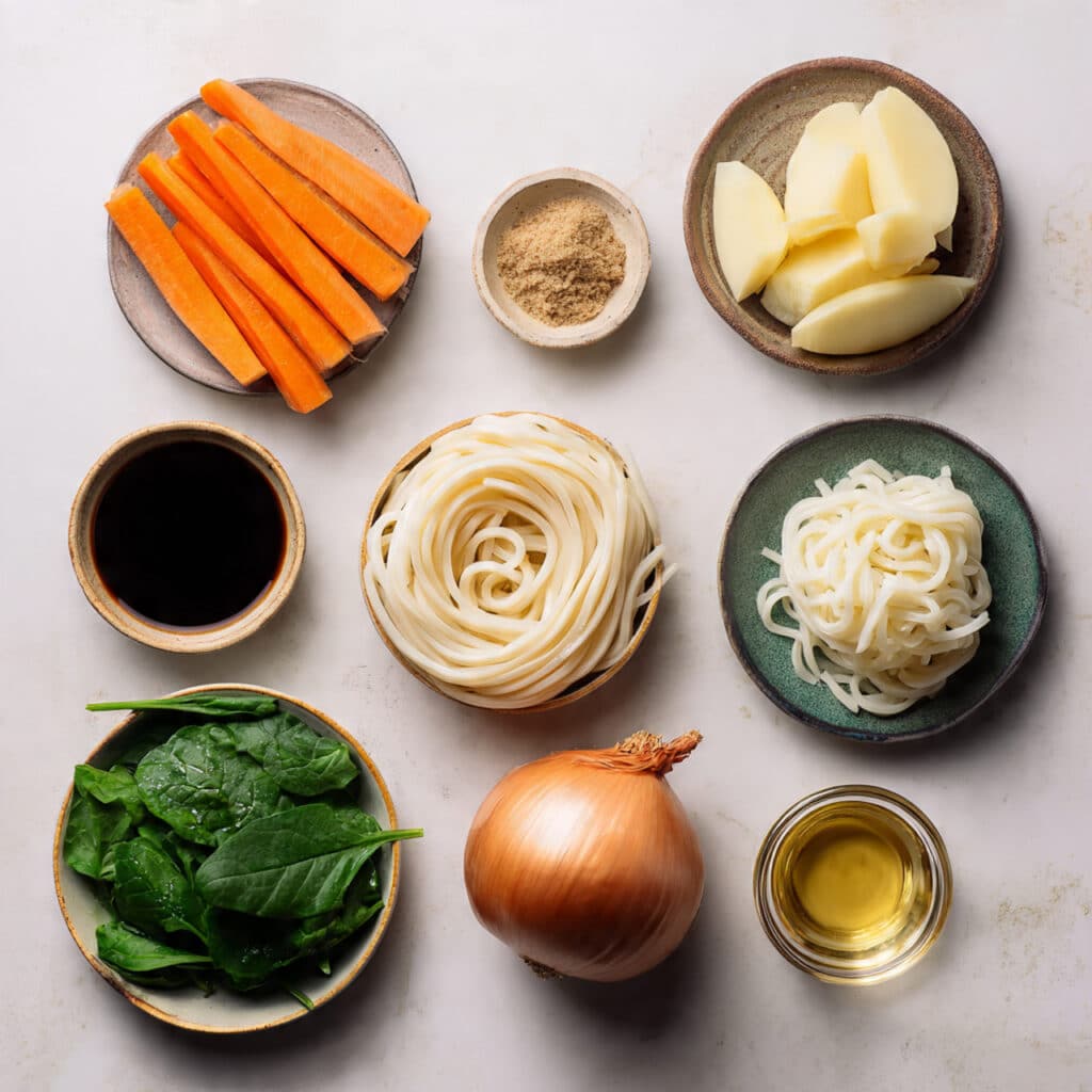 - Udon Noodles: 2 portions, either frozen or fresh. These thick noodles soak up all the curry flavor while staying satisfyingly chewy.