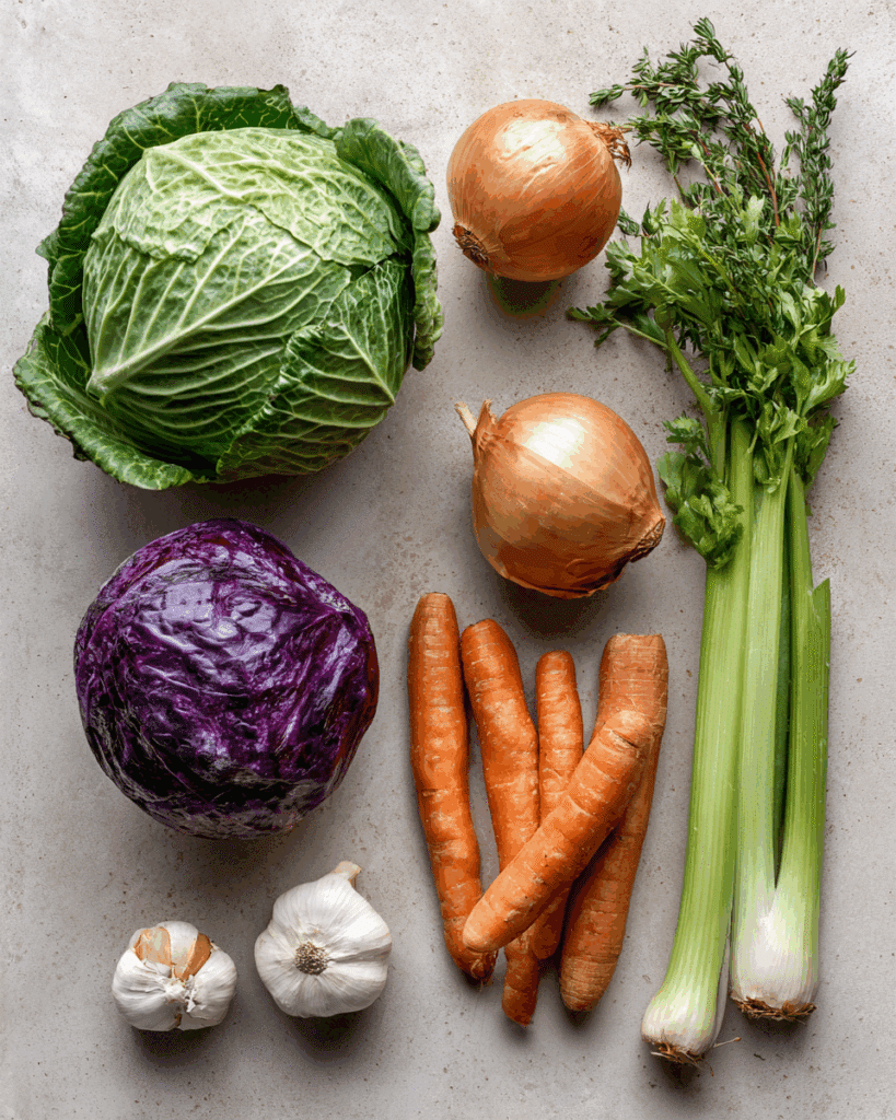 The key to a delicious detox cabbage soup is using fresh, wholesome ingredients. Here’s a look at what you’ll need: