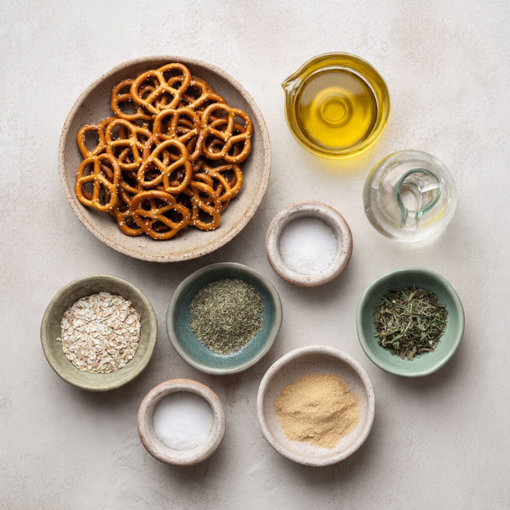- Mini Pretzels: 10 cups They’re the perfect shape to soak up all that seasoning.