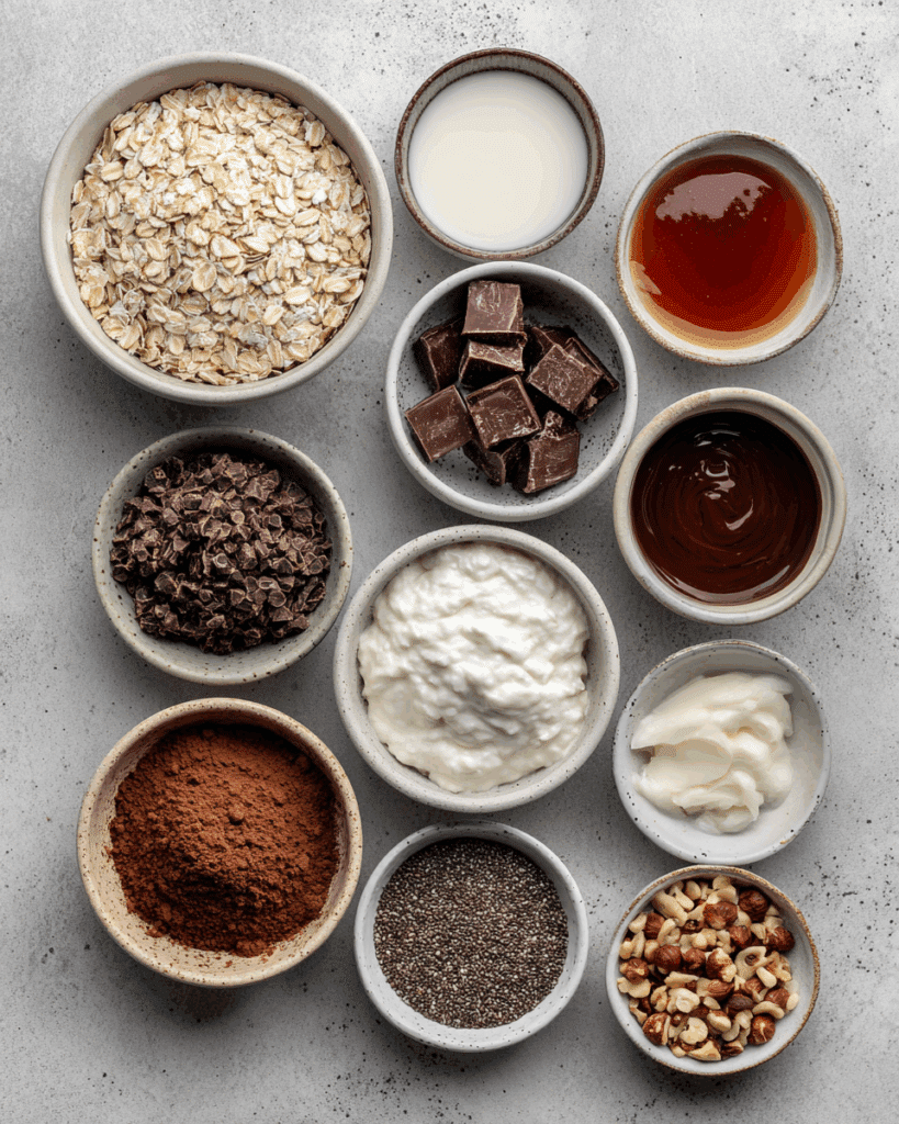 Keywords: ferrero roche overnight oats, chocolate oats, dessert breakfast, hazelnut oats, make-ahead breakfast