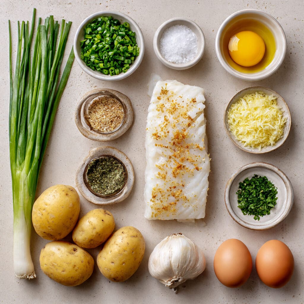 - Potatoes: 2 medium, boiled and mashed – Help bind the mixture and give the cakes a soft, fluffy interior.