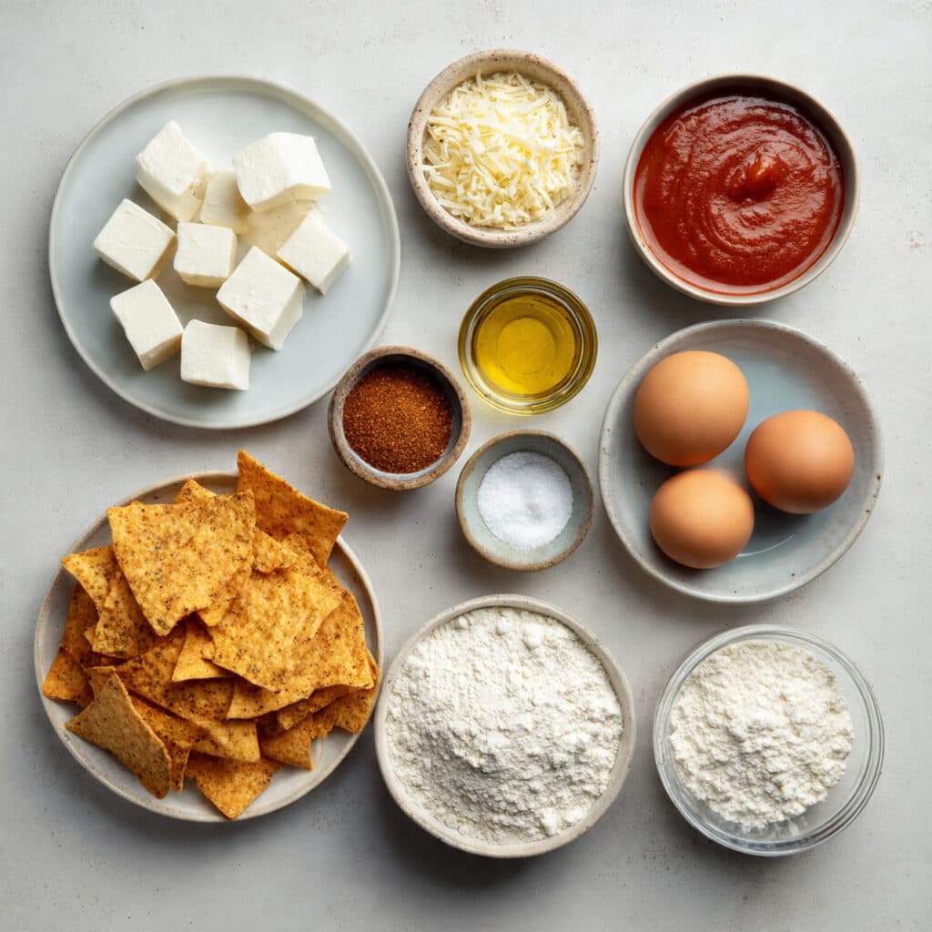 - Nacho cheese tortilla chips: 2 cups, finely crushed. These create the bold, flavorful outer coating and bring that signature cheesy crunch.