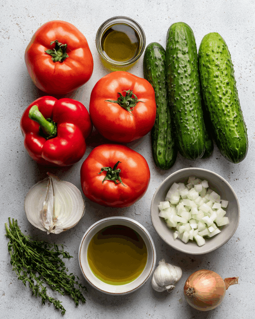 The ingredients for gazpacho are as simple as they are delicious. Each one plays a vital role in creating that fresh, refreshing flavor.