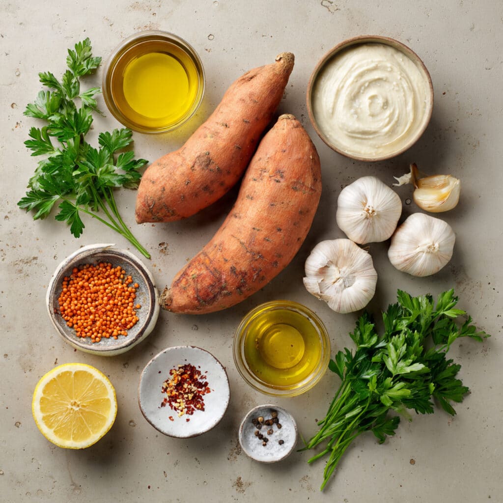 - Sweet Potatoes: 2 medium, scrubbed and halved lengthwise. These act as our creamy, earthy base.
