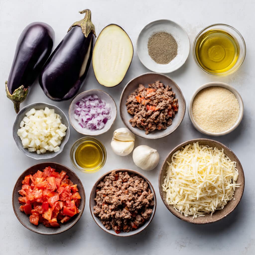Ground Beef: Ground beef is the heart of the stuffing, providing protein and a rich, savory flavor that contrasts beautifully with the soft eggplant.