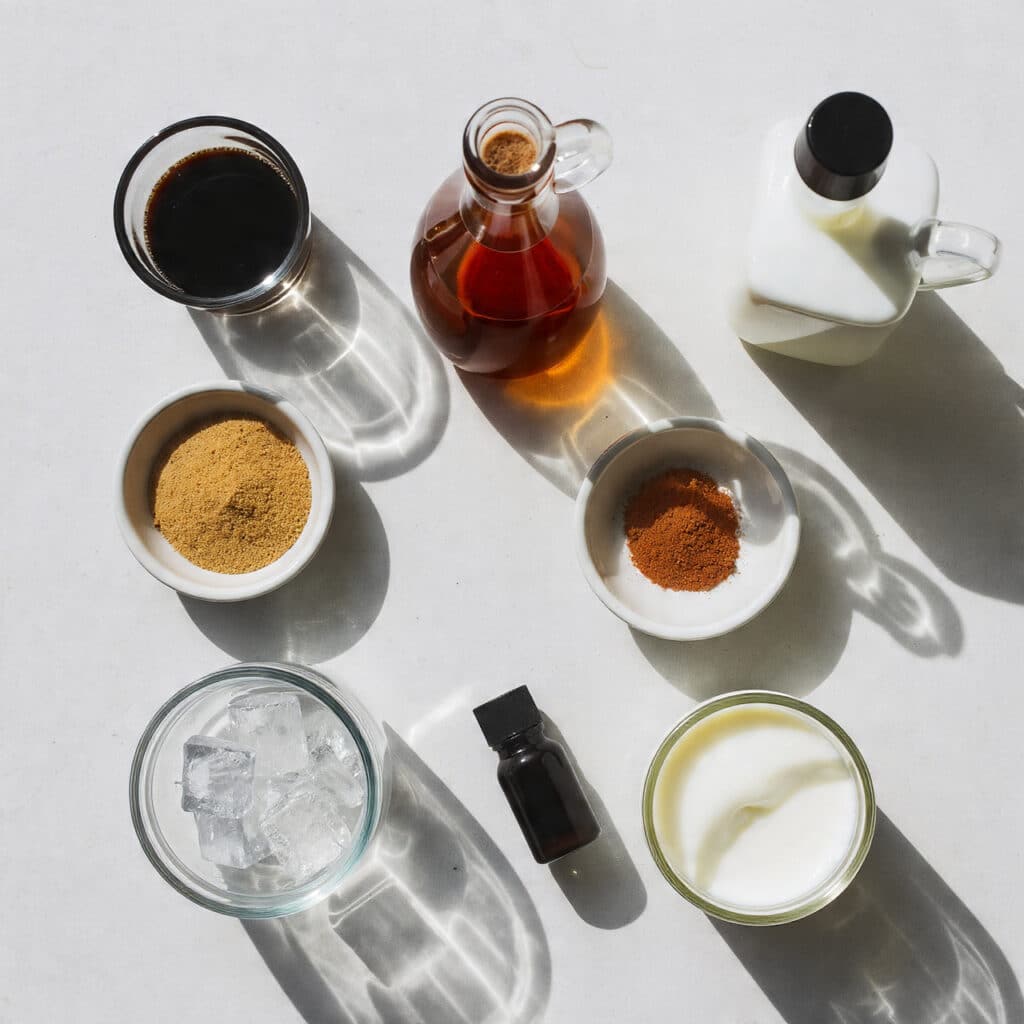 - In a cocktail shaker or mason jar, combine espresso, maple syrup, brown sugar, ground cinnamon, and ice cubes.
