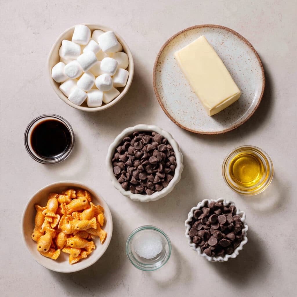 This recipe was born during a late-night snack raid. I was craving something sweet, but all I had were marshmallows, some leftover goldfish crackers, and a half-used bag of chocolate chips. I threw them together on a whim, and to my surprise, it turned out to be one of the best no-bake desserts I’ve ever made. It’s now a go-to treat in our house, especially when we need a quick crowd-pleaser.