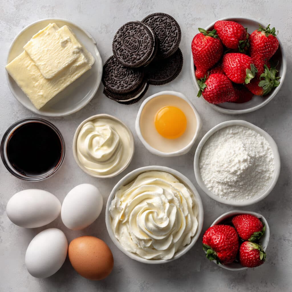 - Oreo Cookies: 12 cookies, crushed finely. Forms the rich, chocolaty crust.