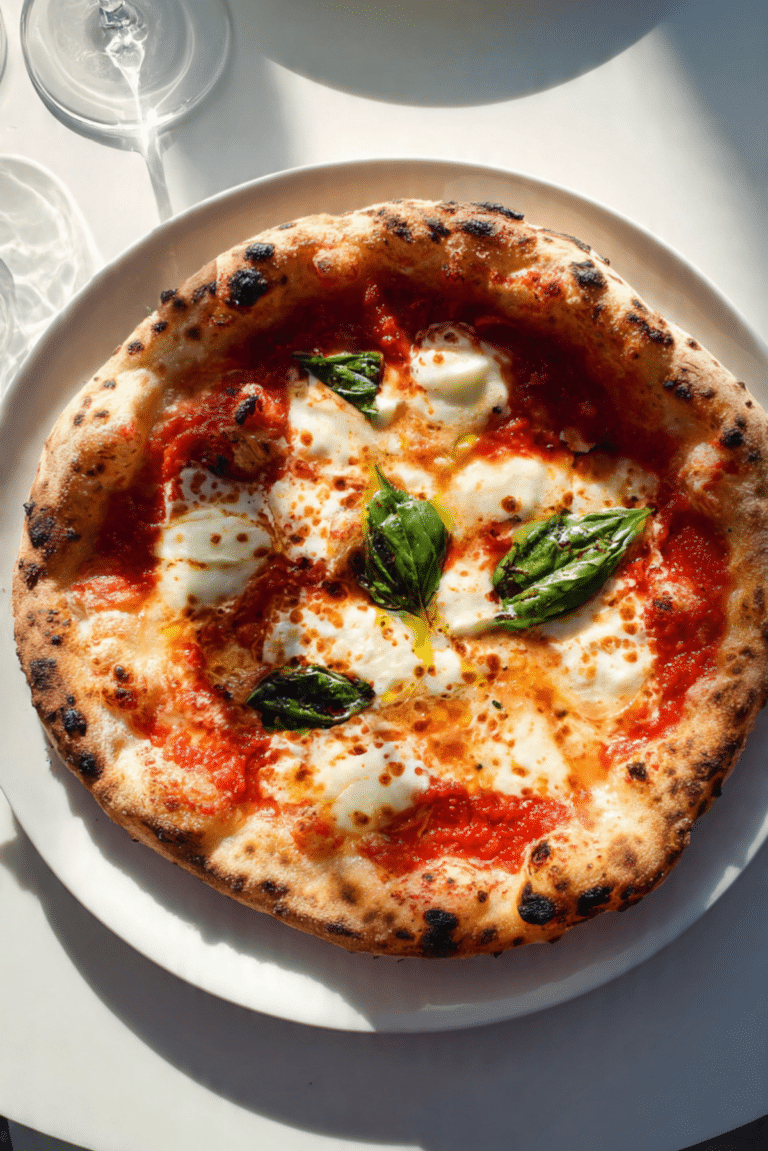 There is something almost magical about pulling a hot Neapolitan Pizza from the oven. The crust is puffed and lightly charred, the tomato sauce smells sweet and bright, and the mozzarella melts into creamy pools that stretch with every slice. The fresh basil hits the heat and releases that unmistakable aroma that fills the kitchen in seconds. Trust me, you’re going to love this. This one’s a total game-changer, and let me tell you, it’s worth every bite.