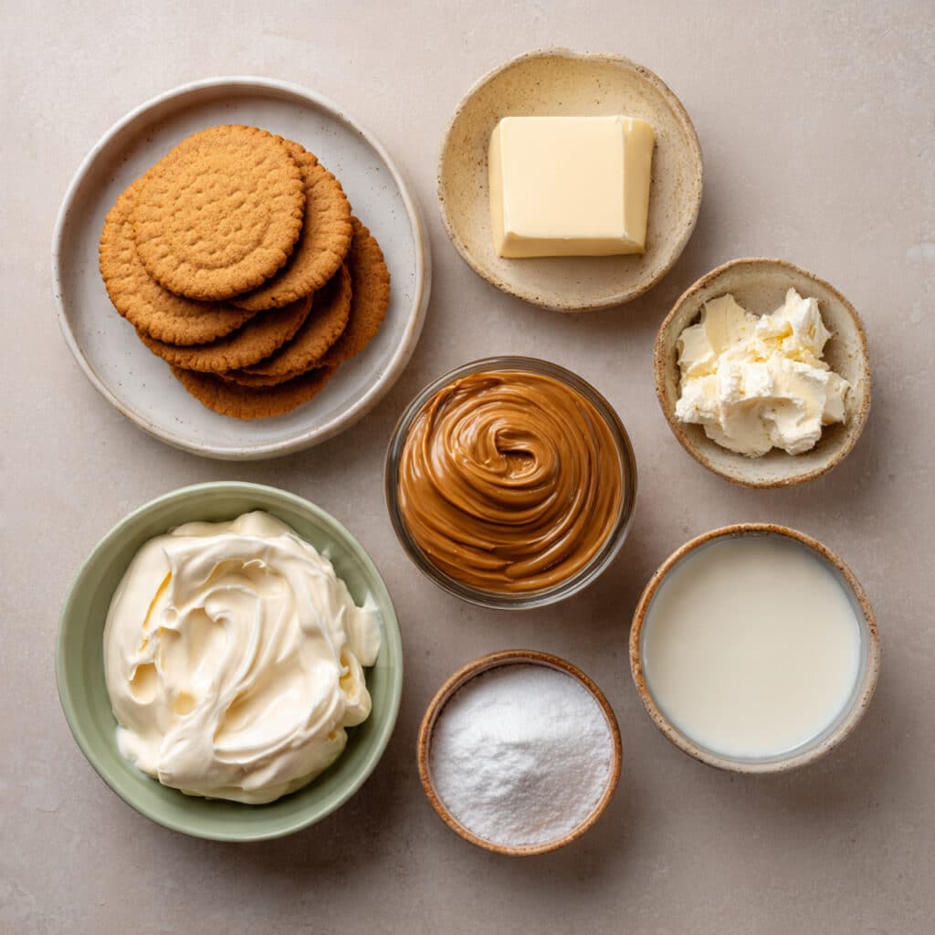 - Biscoff Biscuits: 250 grams, crushed finely. These form the buttery, caramel flavored base.