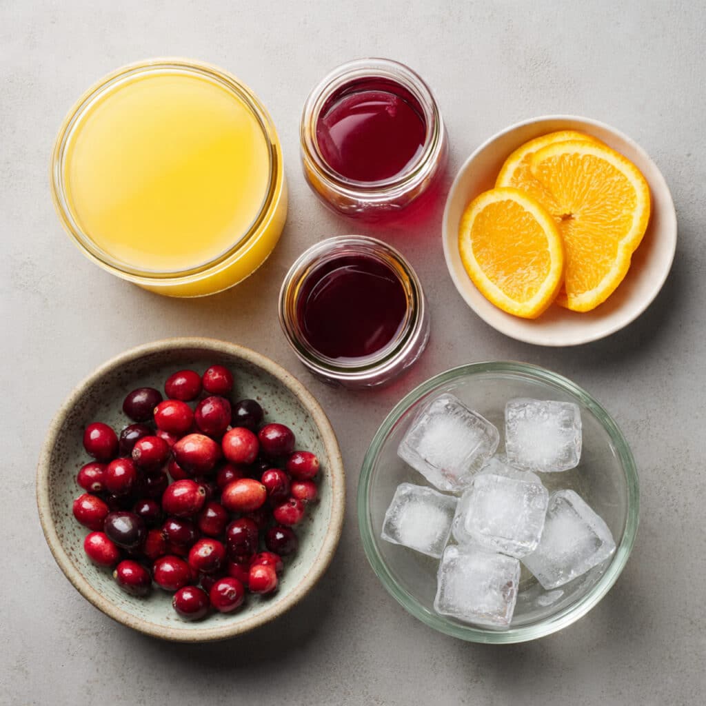 - Cranberry Juice: 1/2 cup – Gives the drink its beautiful blush and tart contrast.