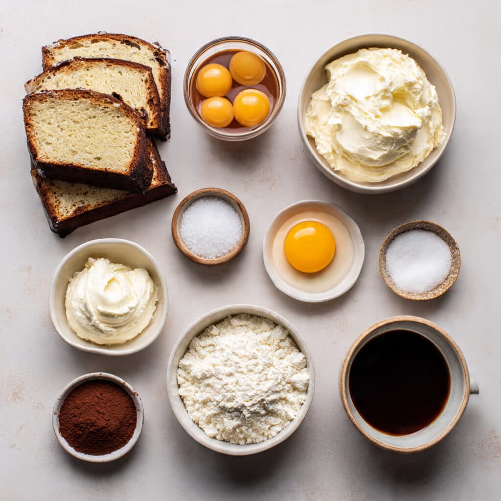 Mascarpone Cheese: An ultra-creamy Italian cheese that’s rich, buttery, and just a touch tangy, giving tiramisu its signature velvety finish.