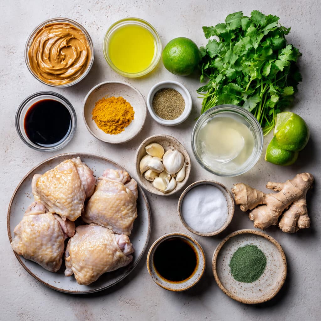 - Combine Ingredients: In a bowl, mix peanut butter, soy sauce, lime juice, garlic, ginger, honey, coconut milk, and spices