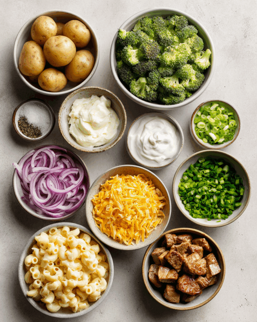 This dish came to life on a rainy Saturday afternoon. I had a bunch of leftover toppings from the week some mac and cheese, a little pulled chicken, a handful of steamed broccoli and a bag of golden potatoes just begging to be used. So I roasted them all up, halved them, and started loading. The result? A flight of stuffed potatoes that was as fun to make as it was to eat. It reminded me of those sampler platters at restaurants where every bite brings a new flavor adventure.
