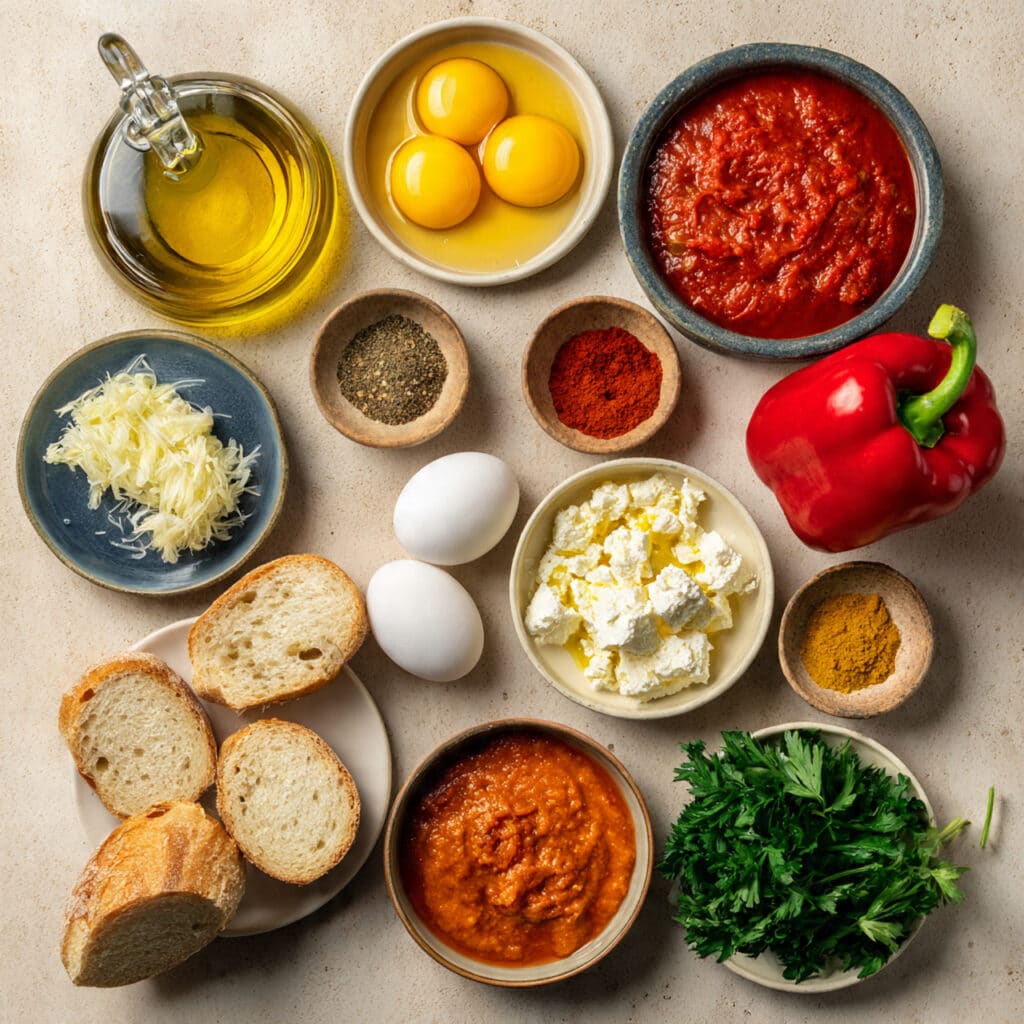 Ingredients in Shakshouka with Crusty Bread