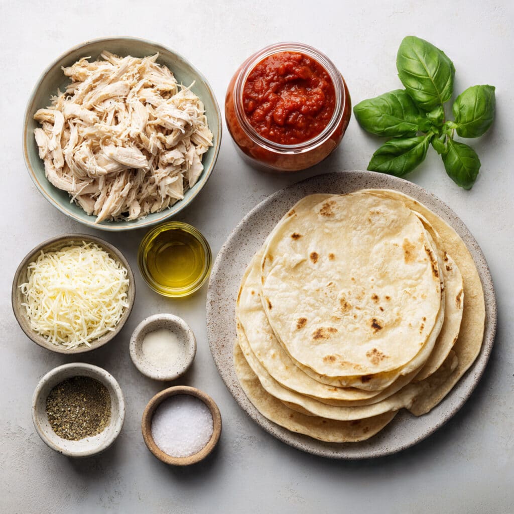 - Flour Tortillas: 4 medium tortillas, act as the crispy base