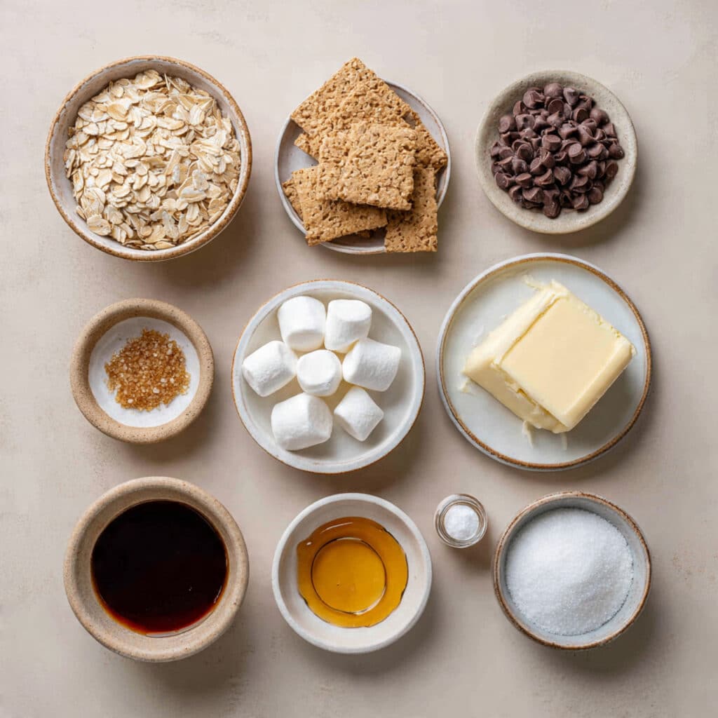 - Graham Crackers: 1 cup, crushed – Brings the signature s’mores flavor and crunch.