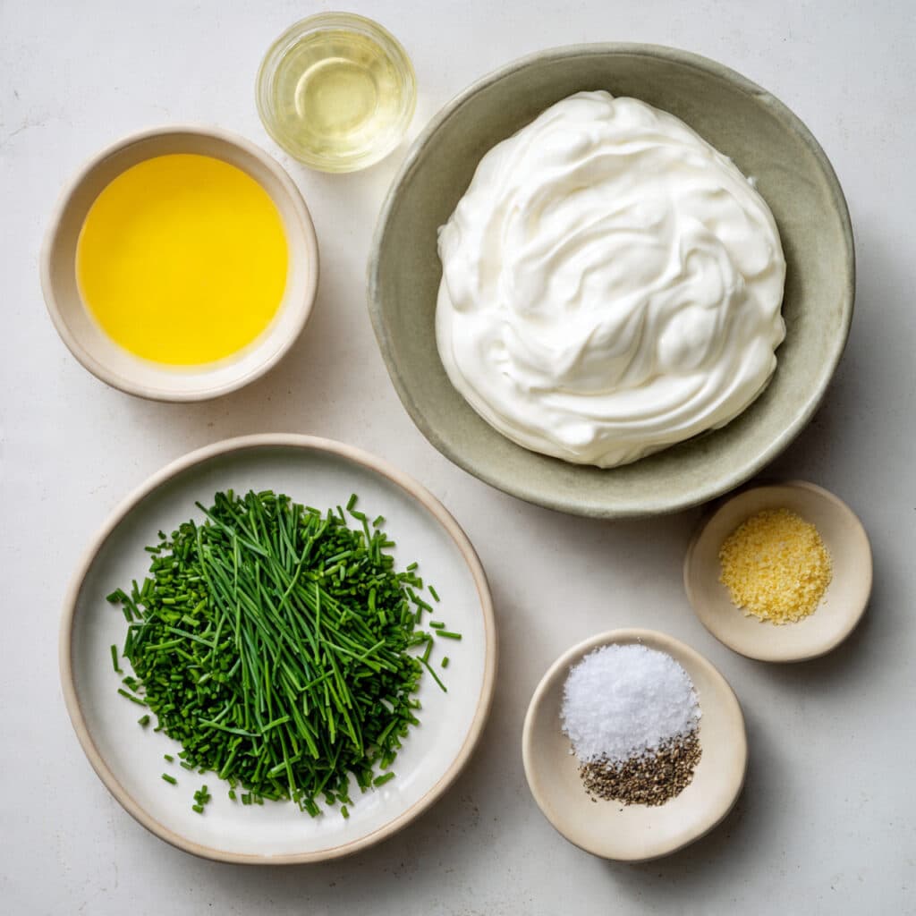 - Combine Ingredients: In the mixing bowl, add the sour cream, chopped chives, garlic powder, lemon juice, salt, and black pepper.
