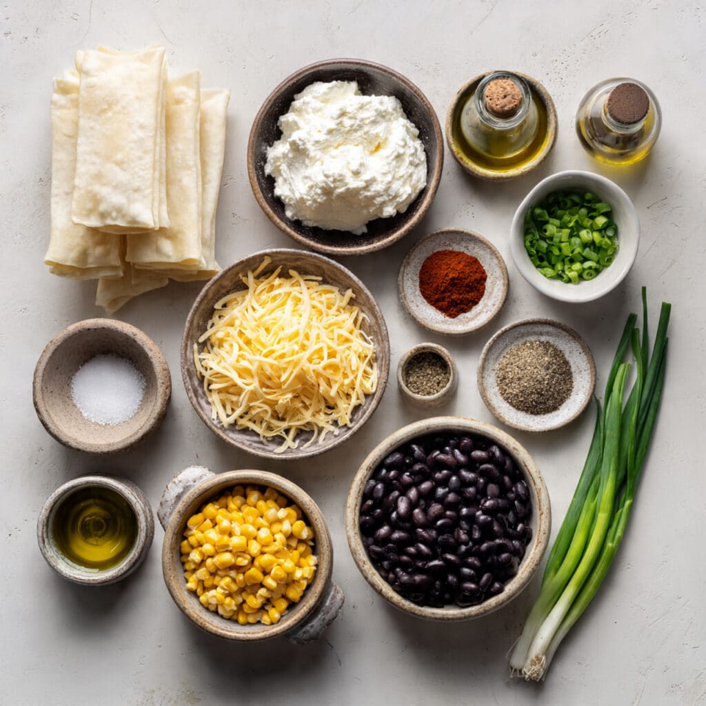 These wontons strike that perfect balance between crispy and creamy. The edges crunch when you bite in, giving way to a velvety, cheesy center. The smoky chiles and sweet corn add bursts of flavor, while the beans bring just the right amount of heartiness.