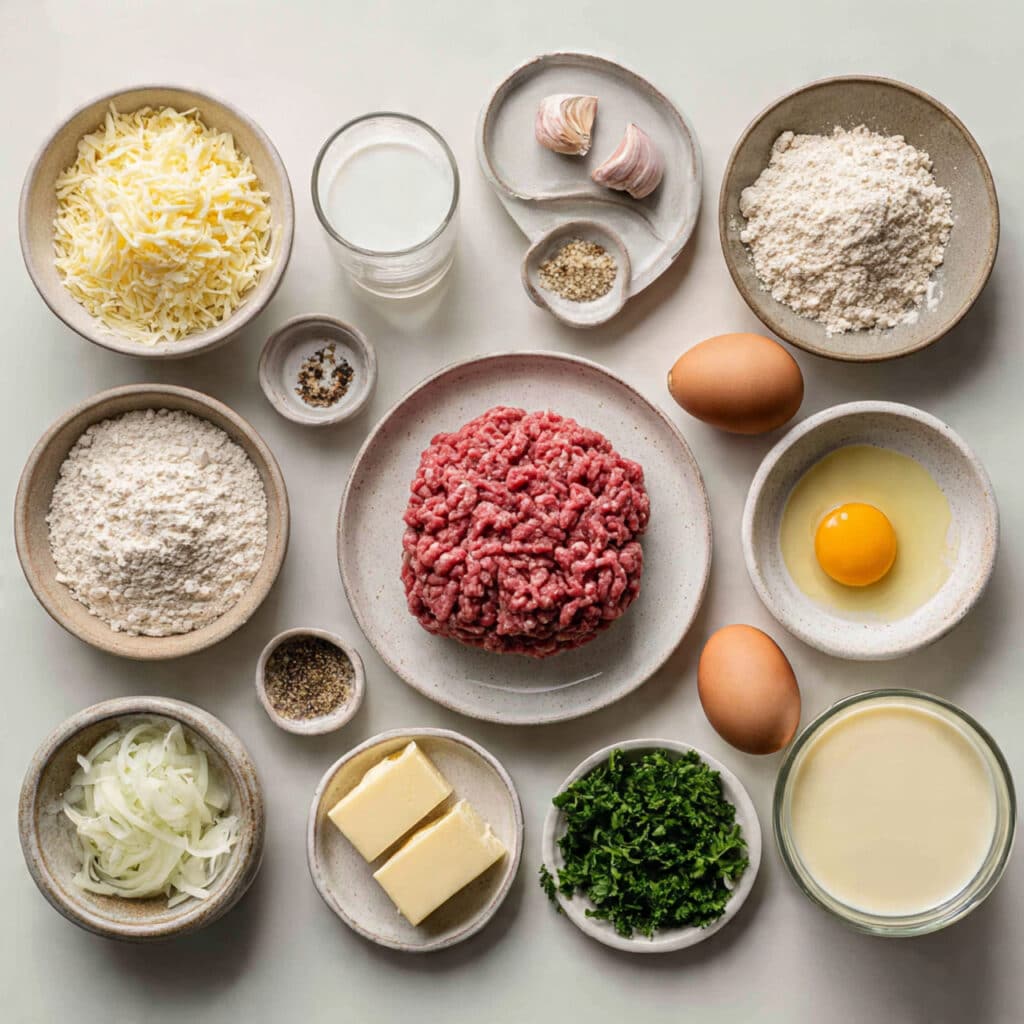 - Ground Beef and Pork: 1/2 pound each. The combo gives you the best texture and richness.