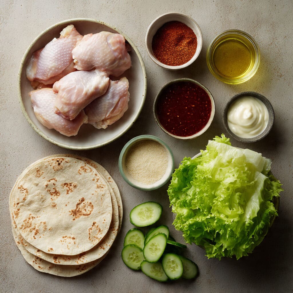Let the chicken rest for a few minutes, then slice into strips. Warm the tortillas slightly, then layer with lettuce, cucumber, and sliced chicken. Add more sweet chili sauce or mayo if desired. - Cook to Perfection: