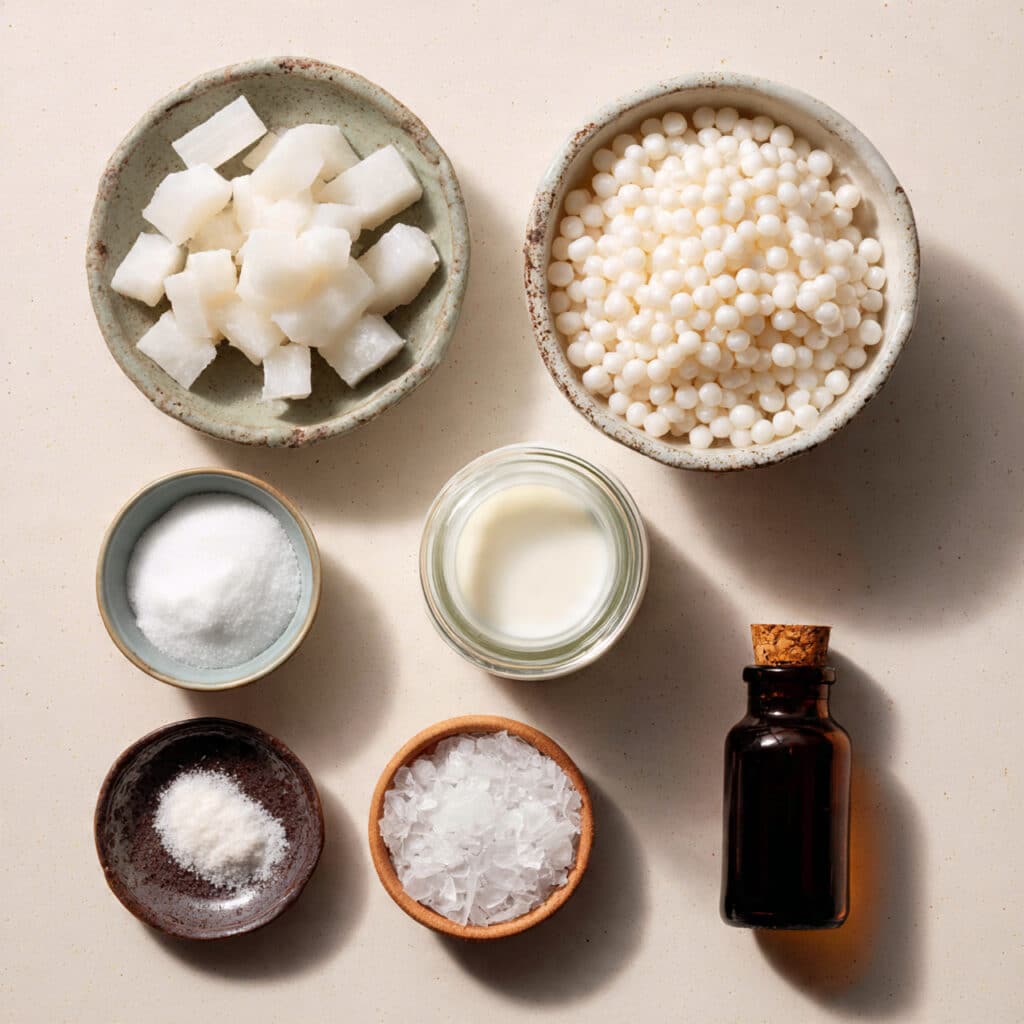 - Small Tapioca Pearls: ½ cup, soaked for 10 minutes. Gives that chewy contrast.