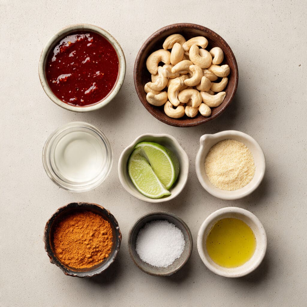 - Cashews: 1/4 cup – Creates a creamy base that makes the sauce smooth and velvety.