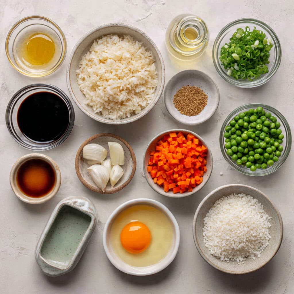 Cooked Rice: The real star. Cold, day-old rice holds its shape and fries up beautifully without turning soggy.
