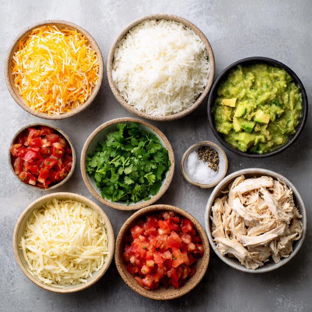 You can prep the rice and chicken ahead of time, storing them in the fridge for up to 3 days. The avocado and fresh toppings are best added right before serving. If storing leftovers, keep toppings separate and assemble fresh for best texture.