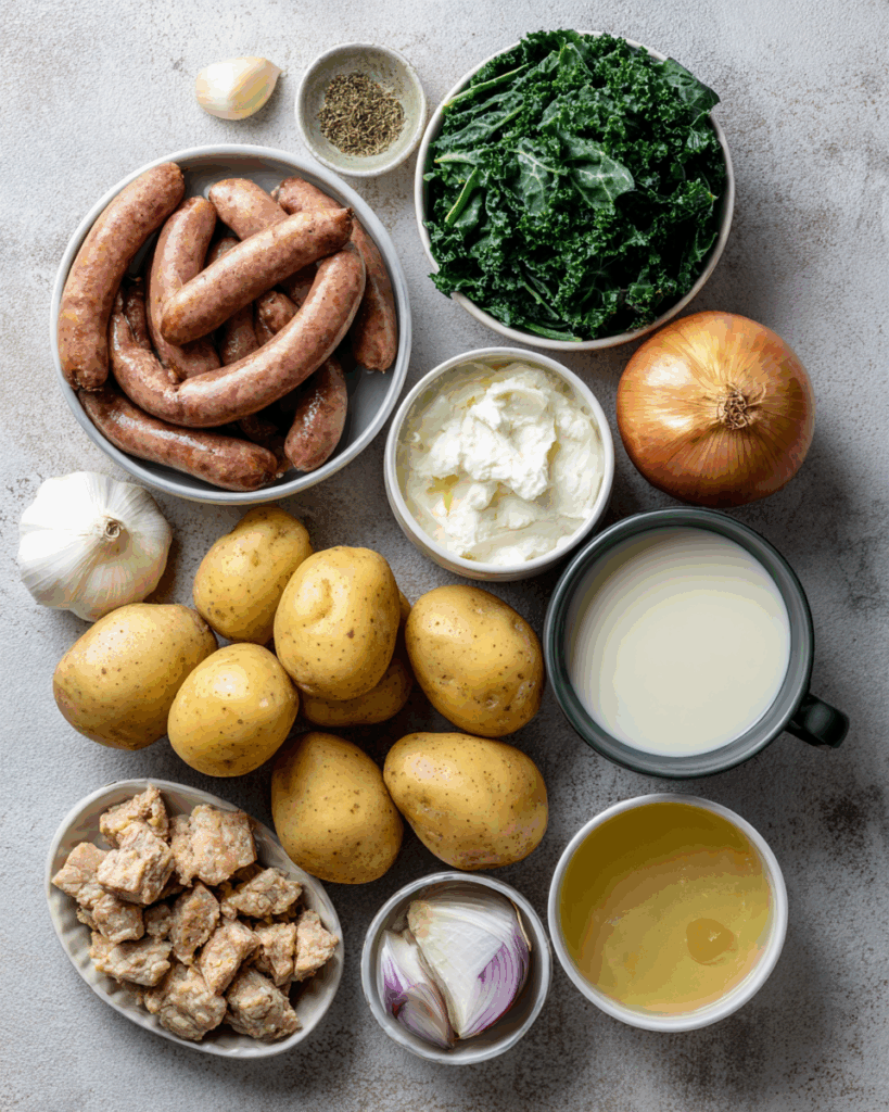 - Sausage: 1 lb (preferably Italian sausage, bulk or casing removed) – Adds richness and depth to the soup.